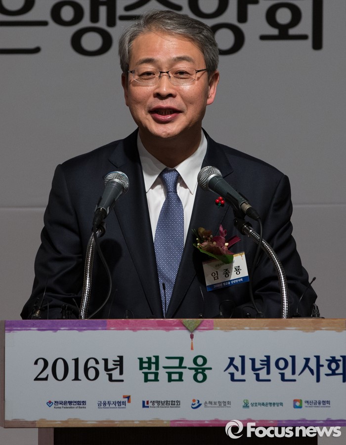 (서울=포커스뉴스) 5일 오후 서울 중구 롯데호텔에서 열린 '2016년 범금융 신년인사회'에 참석한 임종룡 금융위원장이 신년사를 하고 있다.