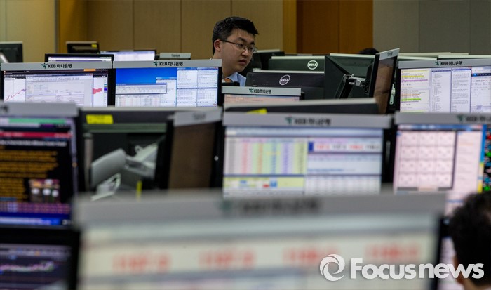 (서울=포커스뉴스) 코스피 지수가 전거래일 보다 5.10포인트(0.26%) 하락한 1,925.43에 거래를 마치며, 북한의 수소탄 실험에도 1920선을 지킨 6일 오후 서울 중구 KEB하나은행 본점 딜링룸에서 딜러들이 업무를 보고 있다. 이날 원달러 환율은 전거래일 보다 9.9원 오른 1197.9원에 마감하며, 지난해 9월 1200.9원 이후 4개월 만에 최고치를 기록 했다.
