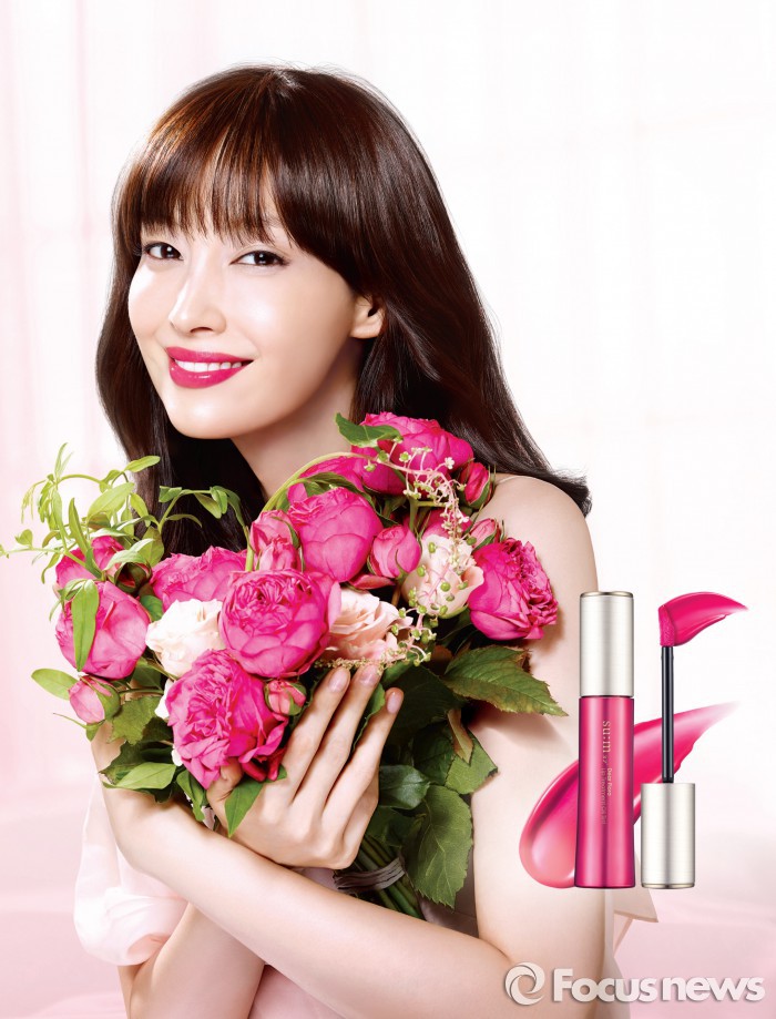 신제품은 △딥레드 △레드 △베리 핑크 △핑크 △오렌지 등 5가지 컬러로 구성됐다. 가격은 각 2만8000원대다.숨37˚의 신제품 '디어 플로라 립 트리트먼트 오일 틴트' 베리핑크로 메이크업한 배우 이나영의 화보컷. <사진제공=LG생활건강>