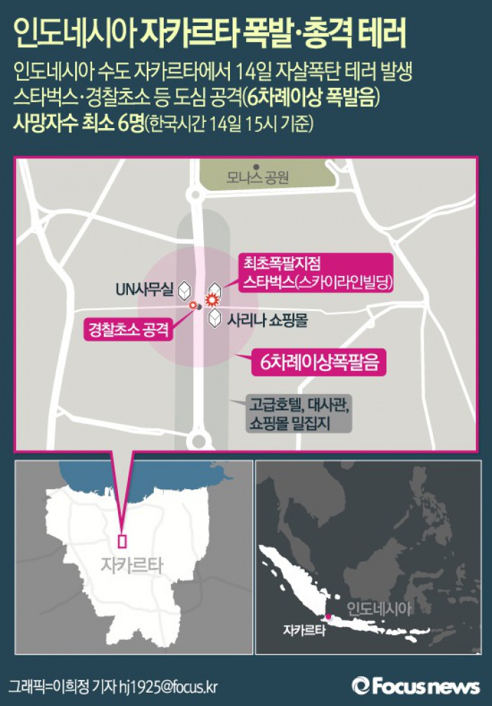 | △ [그래픽] 인도네시아 자카르타 폭발·총격 테러 발생 |