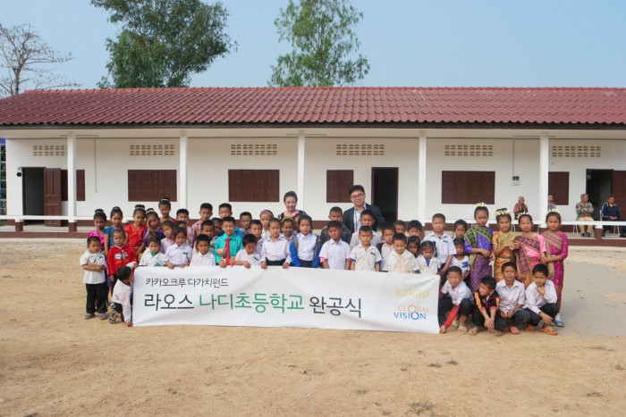 카카오(대표 임지훈)는 '다가치펀드'를 통해 국제구호단체 글로벌비전(이사장 이정익)과 함께 라오스 싸나캄 지역에 나디초등학교를 건설했다고 15일 밝혔다.