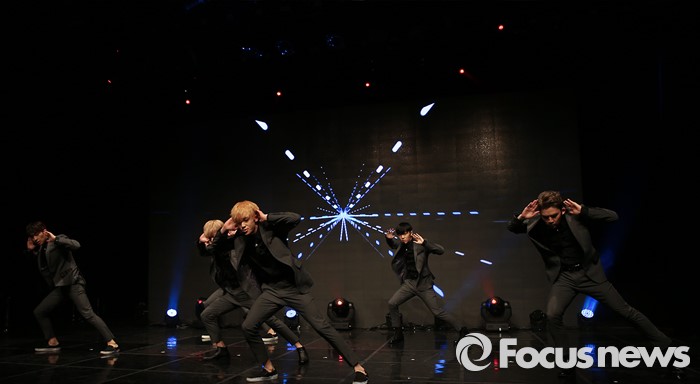 (서울=포커스뉴스) 18일 오전 서울 강남구 일지아트홀에서 열린 아이돌 그룹 틴탑의 미니앨범 'RED POINT' 쇼케이스에 참석한 멤버들이 신곡 '사각지대'의 무대를 선보이고 있다.