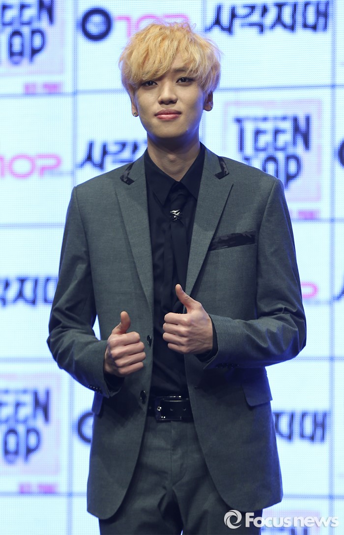 (서울=포커스뉴스) 18일 오전 서울 강남구 일지아트홀에서 열린 아이돌 그룹 틴탑의 미니앨범 'RED POINT' 쇼케이스에 참석한 멤버 니엘이 포토타임을 갖고 있다.