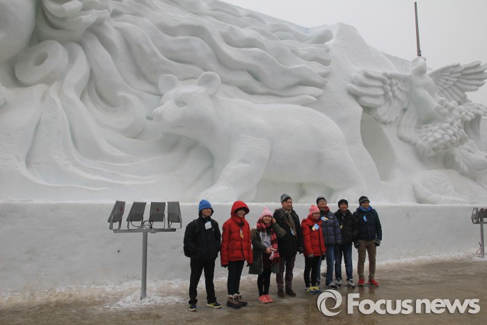 축제장 둑에 인공 눈을 뿌려 쌓은 성에는 우리와 피부가 다른 외국인들이 삼삼오오 모여 기념사진을 찍었다.