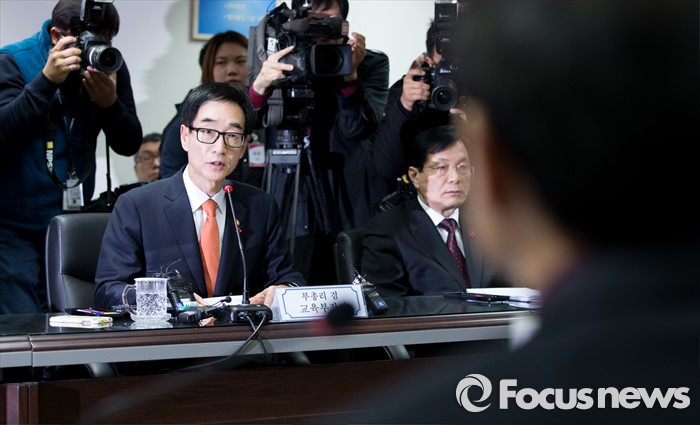 (서울=포커스뉴스) 18일 오후 서울 종로구 정부서울청사에서 이준식 부총리 겸 교육부 장관이 전국 시도교육감협의회 회장단 간담회에 참석해 모두발언을 하고 있다.