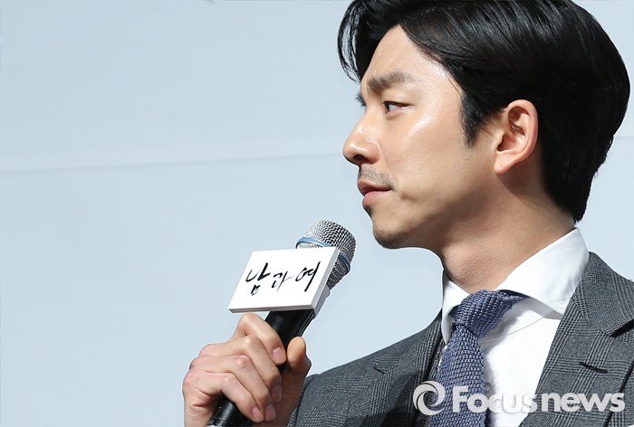 (서울=포커스뉴스) 19일 오전 서울 강남구 압구정 CGV에서 열린 영화 '남과 여' 제작보고회에 참석한 배우 공유가 취재진의 질문에 답하고 있다.