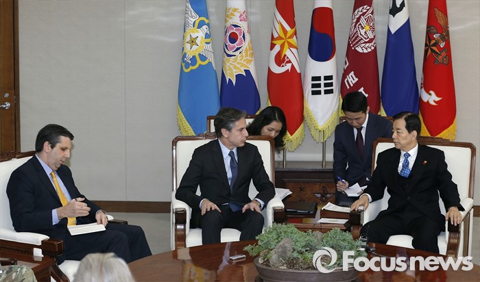 (서울=포커스뉴스) 20일 오전 서울 국방부에서 한민구 장관과 토니 블링큰 미 국무부 부장관이 북한의 제4차 핵실험에 대한 평가와 함께 한·미 양국의 공조 방안 등을 논의하고 있다. 맨 왼쪽은 마크 리퍼트 주한미대사.