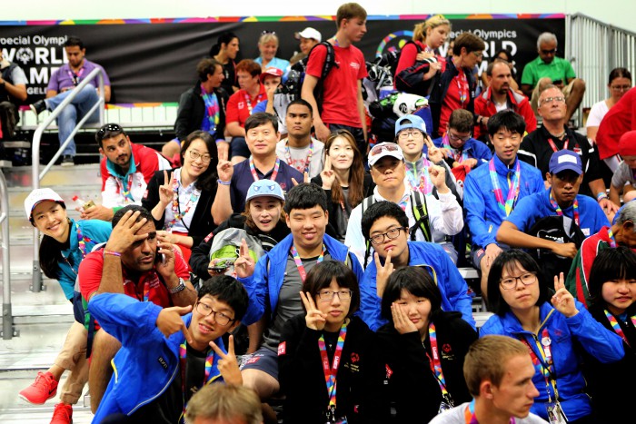 한편 엔씨소프트문화재단은 발달장애인 중 의사소통에 심각한 어려움을 겪는 이들을 위한 보완대체의사소통 앱 3종 '나의 AAC 기초', '나의 AAC 아동', '나의 AAC 일반'을 제작해 무료로 보급 중에 있다. 보건복지부 통계에 따르면 우리나라의 발달장애인 수는 2014년 기준으로 전체 등록 장애인의 8.2%인 약 20만3000명이다.지난해 LA 스페셜올림픽 세계대회에 참가한 한국대표팀 선수, 코치, 자원봉사자들 모습 <사진제공=엔씨소프문화재단>