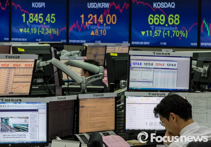 (서울=포커스뉴스) 코스피 지수가 외국인과 기관의 매도 공세에 전 거래일보다 44.19포인트(2.34%) 하락한 1,845.45에 거래를 마친 20일 오후 서울 중구 KEB하나은행 딜링룸에서 한 딜러가 업무를 보고 있다. 이날 원달러 환율은 전 거래일보다 8.1원 오른 1214원에 거래를 마감했다.