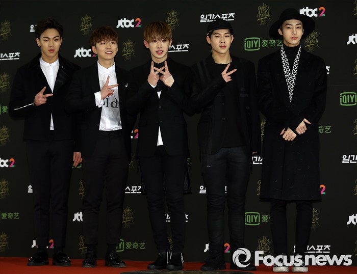 (서울=포커스뉴스) 20일 서울 동대문구 경희대학교 평화의 전당에서 열린 제 30회 골든디스크 시상식에 참석한 아이돌 그룹 몬스타 엑스가 포토타임을 갖고 있다.