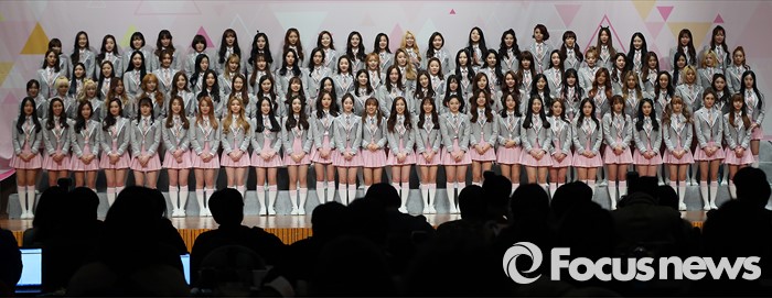(서울=포커스뉴스) 21일 오후 서울 영등포구 63스퀘어에서 열린 Mnet '프로듀스 101' 제작발표회에 참가 연습생들이 포토타임을 갖고 있다.