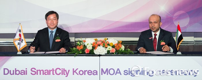 (인천=포커스뉴스) 인천시와 아랍에미리트(UAE) 두바이 국영기업 '스마트시티'(SCD)는 22일 낮 12시 송도쉐라톤호텔에서 인천 검단에 글로벌 기업도시 '스마트시티'를 조성하기 위한 합의각서(MOA)를 체결했다.