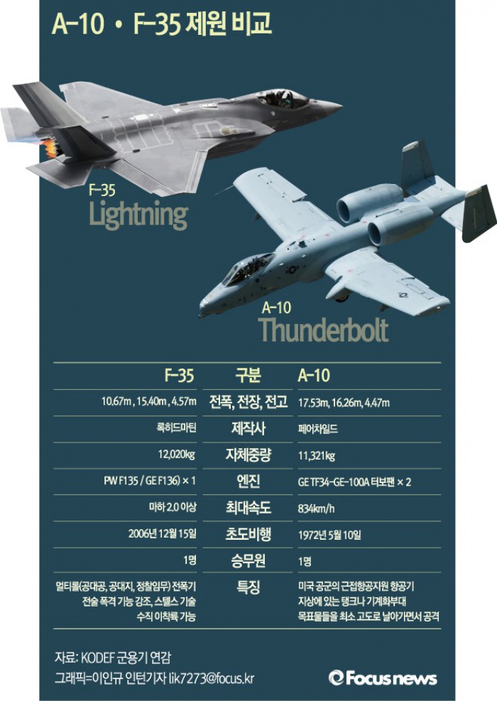| △ [그래픽] A-10, F-35 제원 비교 |