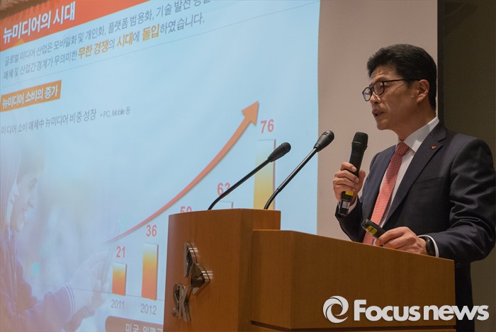 한편 미래부는 다음달 첫째 주와 넷째 주 중 토론회 및 공청회를 개최할 계획이다. 해당 토론회에서는 SK텔레콤의 CJ헬로비전 인수합병에 관한 산·학·연 전문가, 관련 사업자, 시민단체 등의 의견을 공개적으로 청취하는 자리를 마련할 예정이다.(서울=포커스뉴스) 2일 오후 서울 중구 SK T타워에서 열린 'SK텔레콤-CJ헬로비전' 인수합병 설명회에 참석한 이형희 MNO총괄이 인수합병 취지 및 기대효과를 설명하고 있다. 2015.12.02 양지웅 기자