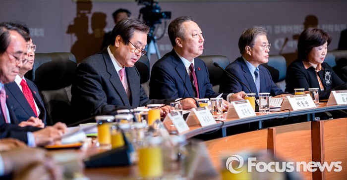 (서울=포커스뉴스) 박용만 대한상공회의소 회장이 26일 오전 서울 중구 대한상공회의소 국제회의장에서 열린 '중장기 경제어젠다 추진 전략회의'에 자리해 모두발언 하고 있다. 이날 회의에 자리한 여야정 대표 및 산학연 대표 70여명은 규제 근본 틀 개선, 기업문화 개선, 국민 행복 위한 서비스 발전 등을 논의 할 예정이다.