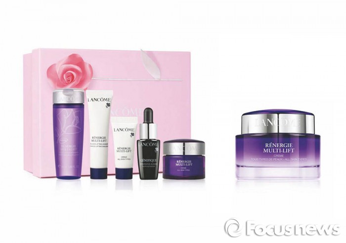 랑콤은 오는 2월25일까지 선물세트 구매 고객에게 스페셜 포장 서비스 ‘프렌치 로즈 서비스’를 제공한다. 세트를 3개 이상 구매하는 고객에게는 제니피끄 마스크 2매(4만원 상당)를 한정 수량 증정한다.랑콤의 레네르지 반중력 탄력 크림 세트 <사진제공=랑콤>