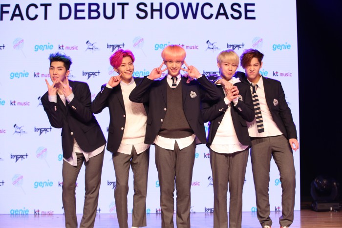 27일 오후 서울 강남구 청담동 일지아트홀에서 임팩트(IMFACT/지안·제업·태호·이상·웅재)의 데뷔 앨범 '롤리팝(LOLLIPOP)' 쇼케이스가 열렸다. 타이틀 곡 '롤리팝'을 작사, 작곡한 웅재는 이 날 자신의 작곡 롤모델로 에픽하이와 빅뱅을 꼽았다.