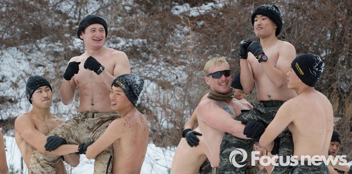(평창=포커스뉴스) 28일 강원도 평창군 황병산 해병대 산악 종합훈련장에서 열린 '한·미 해병대 연합 동계 설한지 훈련'에 해병대 수색대대와 미 해병대 3사단 수색중대 장병들이 참가하고 있다.