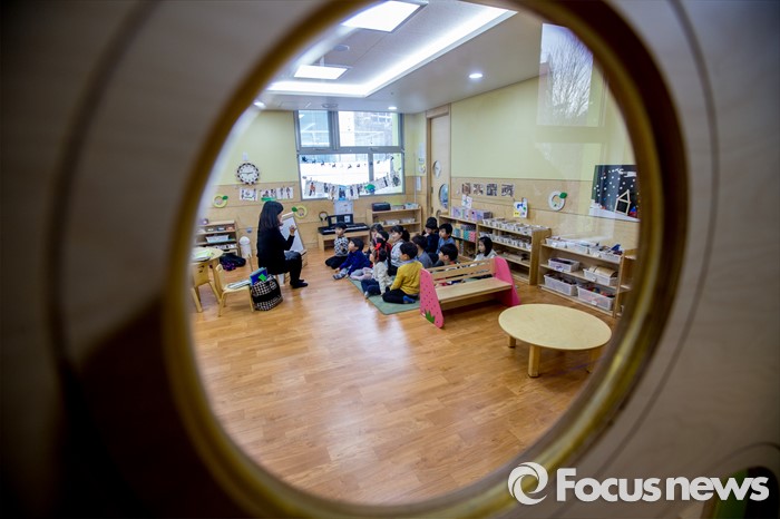 (서울=포커스뉴스) 만3-5세 유아에게 공통적으로 제공하는 교육, 보육 과정인 누리과정 예산 파행으로 보육대란이 이어지고 있는 28일 오후 서울 종로구 한 어린이집에서 어린이들이 공부 하고 있다.