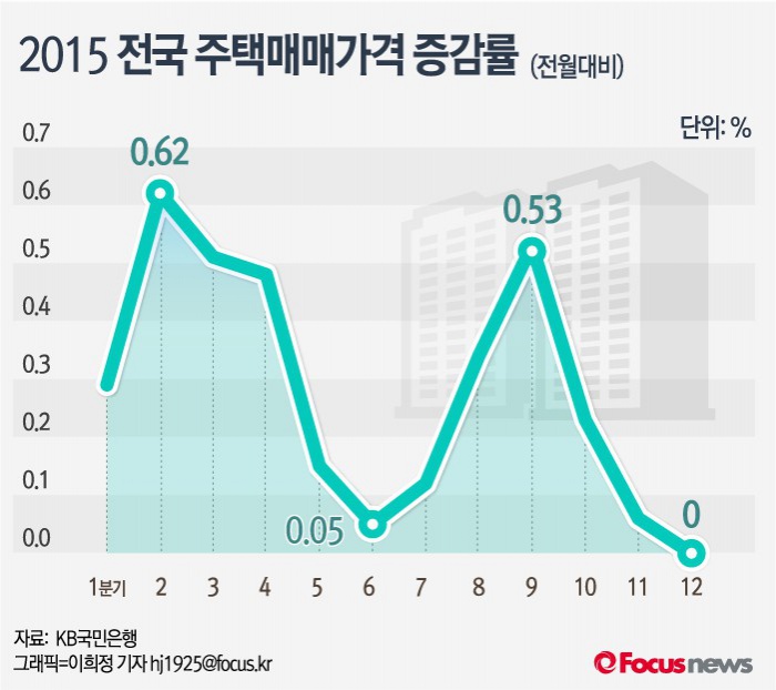 (서울=포커스뉴스) KB국민은행 부동산 통계 자료에 따르면 2015년 전국 주택의 월별 매매가 변동률은 2월이 0.62%로 가장 높은 상승률을 기록했다.