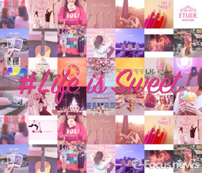 에뛰드하우스는 매주 최고의 '스윗샷'을 선정해 에뛰드하우스 베스트셀러 제품과 특별한 영상을 제작해 줄 예정이다.에뛰드하우스 새 브랜드 슬로건 'Life is sweet' 이미지. <사진제공=아모레퍼시픽>
