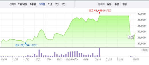 16일 오전 9시24분 현재 바디텍메드는 전일 대비 4150원(14.46%) 오른 3만2850원에 거래되고 있다.