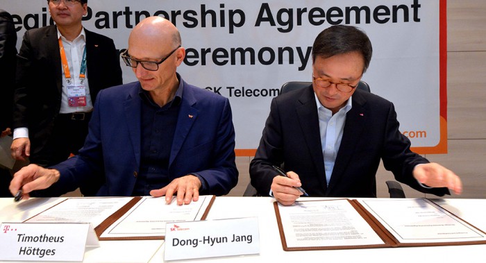 SK텔레콤은 23일 모바일 월드 콩그레스 2016(MWC 2016)에서 도이치텔레콤과 파트너십을 체결했다.