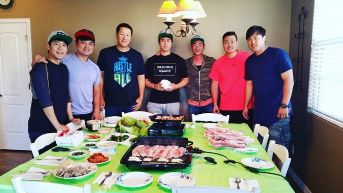 (서울=포커스뉴스) 미국프로야구에서 뛰고 있는 한국선수들이 '삼겹살'로 하나됐다.