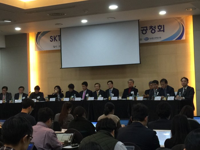 (서울=포커스뉴스) SK텔레콤의 CJ헬로비전 인수합병(M&A)을 놓고 미래창조과학부 개최의 공개 토론회가 24일 양재동The-K 호텔(옛 교육문화회관)에서 열렸다.
