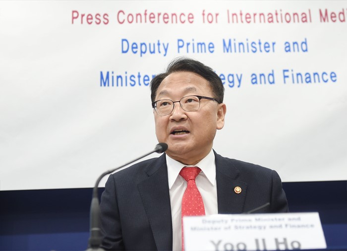 이로 인해 성과연봉제 확대 여부에 따라 경영실적 평가에서 실질적으로 한 등급이 차이가 날 수 있게 된다고 기재부는 설명했다.(서울=포커스뉴스) 유일호 부총리 겸 기획재정부 장관이 2월 22일 오후 서울 광화문 외신지원센터에서 열린 외신기자간담회에서 '한국경제의 현황과 정책방향' 등에 대해 기조발언을 하고 있다. <사진제공=기획재정부> 포커스포토