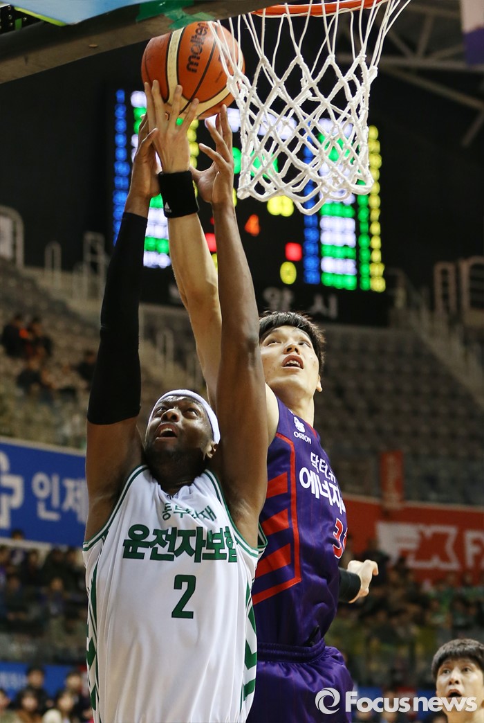 (고양=포커스뉴스) 26일 고양체육관에서 열린 2015-2016 프로농구 오리온-동부 6강 플레이오프 1차전에서 오리온 장재석과 동부 벤슨이 리바운드볼을 다투고 있다.