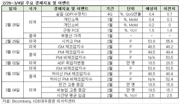 우선 내달 2일에는 중국 2월 차이신 PMI 제조업 지수가 발표된다. 현재 시장 추정치는 48.5로 전월의 48.4 대비 소폭 개선될 것으로 관측된다.