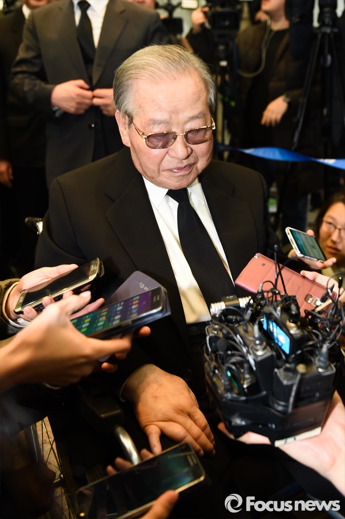 정치 40여 년 인생 동안 초대 중앙정보부장과 제11대·31대 국무총리를 역임했으며, 최다선인 9선 국회의원을 기록하며 공화당 · 신민주공화당 · 민주자유당 · 자유민주연합 4개 정당의 총재 · 대표를 지냈다. 2004년 40여 년간의 정치 생애를 마감하고 정계를 은퇴했다. 김 전 총리가 10일 출판기념회에 참석해 소이부답(笑而不答·웃기만 할 뿐 대답하지 않겠다)만 할지, 최근 정국 관련, 뼈 있는 발언이 나올지 주목된다.(서울=포커스뉴스) 김영삼 전 대통령이 서거한 지난해 11월22일 오전 서울 종로구 서울대병원 장례식장에 마련된 김 전 대통령 빈소에서 김종필 전 국무총리가 조문을 마치고 나서고 있다. 사진공동취재단