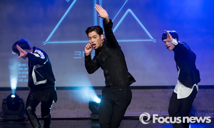 (서울=포커스뉴스) 29일 오후 서울 강남구 일지아트홀에서 신인 보이그룹 크나큰이 데뷔 쇼케이스에서 타이틀곡 'KNOCK'를 선보이고 있다.