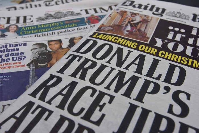 독일 신문 빌트는 최근 전 편집국장 프란츠 요세프 와그너의 칼럼을 실었다. 와그너는 “미국의 추한 면은 죽지 않았다. 독일의 추한 면도 죽지 않았다”고 썼다. 와그너는 트럼프를 우파 정당 ‘독일을 위한 대안(代案)’의 정치인 프라우케 페트리에 비유했다. 페트리는 국경을 무단으로 넘는 사람들에게 총을 쏘라고 경찰에 촉구했다. 와그너는 “이런 사람들이 권력을 잡으면 우리는 어떤 세상에 살 것인가?”라고 물었다.지난해 12월 9일자 영국 신문들의 1면. "런던경찰이 특정한 무슬림 구역을 순찰하는 것을 겁낸다"는 트럼프의 발언을 일제히 보도하고 있다.(Photo by Ben Pruchnie/Getty Images) 2016.03.01 송철복 국제전문위원 (Photo by Pascal Le Segretain/Getty Images)2016.03.01 ⓒ게티이미지/멀티비츠 (Photo by Ben A. Pruchnie/Getty Images)2016.03.01 ⓒ게티이미지/멀티비츠 (Photo by Adam Berry/Getty Images)2016.03.01 ⓒ게티이미지/멀티비츠