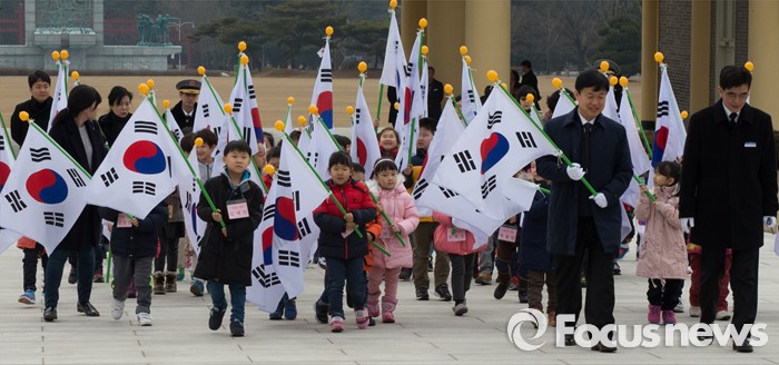 (대전=포커스뉴스) 3일 오전 입학 후 첫 수업에 들어간 대전 화정초등학교 1학년 신입생들이 대전 유성구 국립대전현충원을 찾아 참배를 하기위해 이동하고 있다.