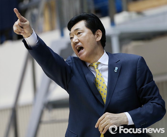(구리=포커스뉴스) 3일 구리시체육관에서 열린 2015~2016 여자프로농구 KDB생명- KEB하나 경기에서 KEB하나 박종천 감독이 경기중 선수들에게 강하게 작전을 주문하고 있다.