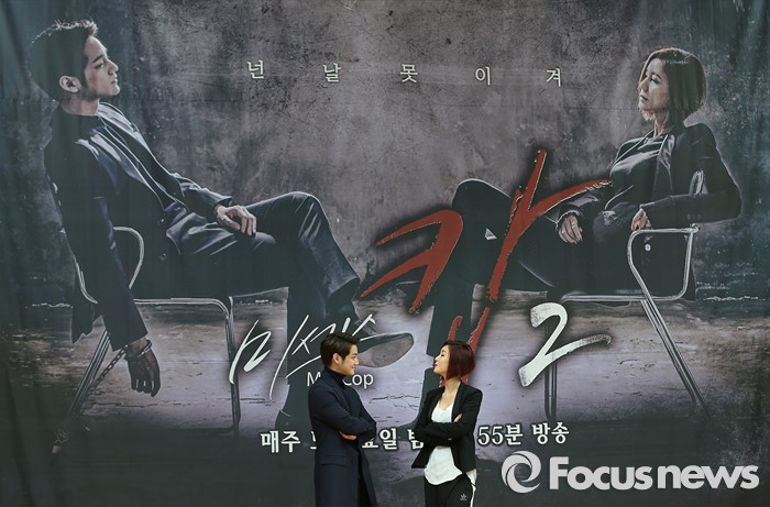 (서울=포커스뉴스) 4일 오후 서울 양천구 SBS 목동사옥에서 열린 SBS 특별기획 '미세스 캅2' 제작발표회에 극중 무법의 천재 사채업자 역할을 맡은 배우 김범(왼쪽)과 서울지청 강력팀장 역할을 맡은 김성령이 포토타임을 갖고 있다.