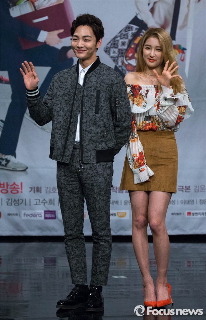(서울=포커스뉴스) 배우 김민재와 걸그룹 포미닛 멤버 남지현이4일 오후 서울 마포구 상암동 MBC 신사옥에서 열린 MBC 드라마 '마이 리틀 베이비' 제작발표회에 참석, 취재진을 향해 포즈를 취하고 있다.