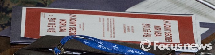 (서울=포커스뉴스) 4일 오후 서울 용산구 국방부에서 열린 주한미군의 사드 배치문제를 협의하기 위한 한·미 공동실무단 첫 회의에서 미국측 대표인 헤드룬드 주한미군사령부 기획참모부장이 꺼낸 2급 비밀 문서가 놓여 있다.
