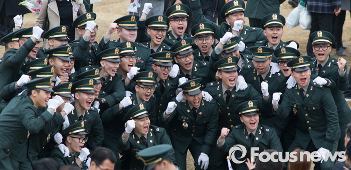 (계룡=포커스뉴스) 4일 오후 충남 계룡대 연병장에서 열린 2016년 장교 합동임관식에서 신임장교들이 기념촬영을 하고 있다.
