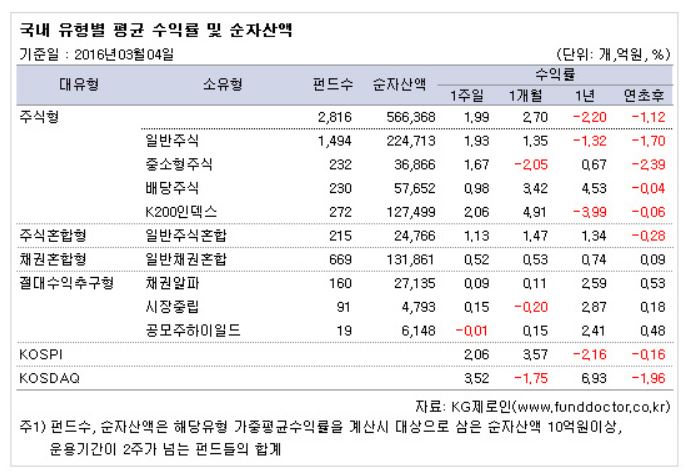 일반주식펀드와 중소형주식펀드도 각각 1.93%, 1.67%의 수익률을 기록했다. 배당주식펀드는 0.98%의 수익률을 달성하는 데 그쳤다.