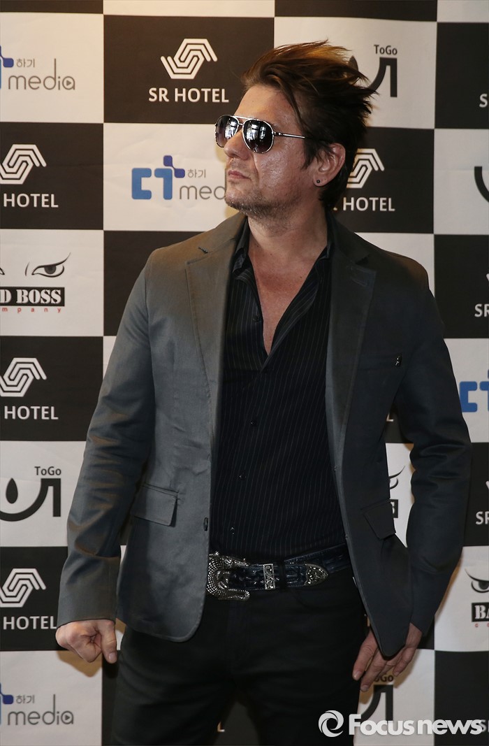 (서울=포커스뉴스) 8일 오후 서울 강서구 SR호텔 서울에서 록그룹 스틸하트의 밀젠코 마티예비치가 기자간담회에 참석해 포토타임을 갖고 있다.