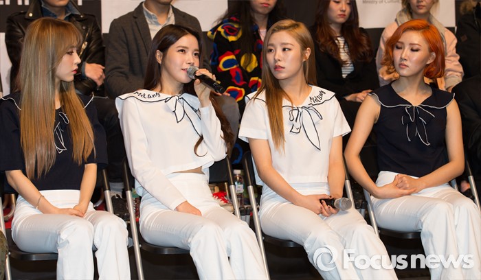 (서울=포커스뉴스) 8일 오후 서울 중구 문화창조벤처단지에서 열린 '2016 케이팝 해외 쇼케이스'에 참석한 가수 마마무가 취재진 질문에 답변하고 있다. 이번 행사에 참가하는 가수는 자이언티와 마마무, 바이바이배드맨, 하임, 러브 엑스테레오, 피해의식, 바버렛츠, 단편선과 선원들, 국카스텐, 이디오테잎, 이루펀트, 에고펑션에러로 총 12개팀이다.