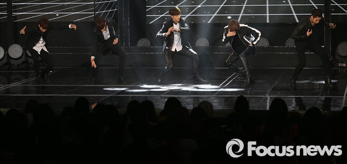 (서울=포커스뉴스) 8일 오후 서울 마포구 SBS프리즘 타워에서 열린 '2016 더쇼 62회' 생방송 촬영 현장에 아이돌 그룹 크나큰이 화려한 무대를 선보이고 있다.