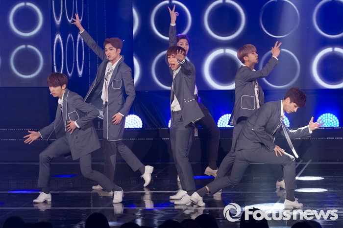 (서울=포커스뉴스) 8일 오후 서울 마포구 SBS프리즘 타워에서 열린 '2016 더쇼 62회' 생방송 촬영 현장에 아이돌 그룹 스누퍼가 무대를 선보이고 있다.