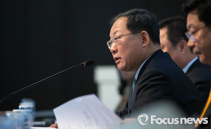 (서울=포커스뉴스) 9일 오전 서울 중구 플라자호텔에서 열린 '2016 경제단체협의회 정기총회'에 참석한 박병원 한국경영자총협회장이 발언을 하고 있다.