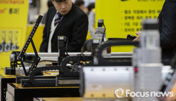 (서울=포커스뉴스) 9일 오후 서울 강남구 코엑스에서 열린 '오토메이션 월드 2016’ 아이로보 부스에서 관람객이 액츄레이터를 살펴보고 있다.
