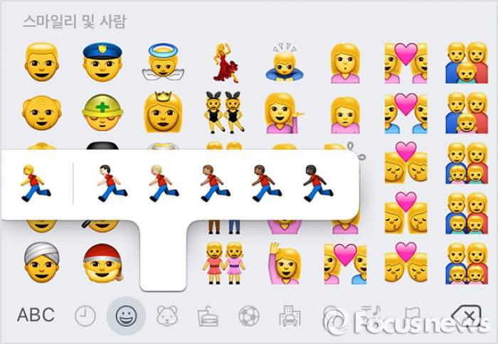 구글을 비롯한 이모티콘 제공사 대부분은 인간을 형상화한 이모티콘을 제공하지 않는다. 표정이 부각되는 노란색 이모티콘을 탑재해 이용자들이 인종 구분 없이 사용하도록 유도하고 있다.삼성 스마트폰 갤럭시 S7 출시가 눈앞이다. 그러나 이번에도 삼성 스마트폰은 이모티콘의 피부색을 선택하는 기능이 빠져 있다. 터번을 쓴 무슬림도 백인으로 묘사한 것으로 알려져 있다. ⓒ게티이미지애플은 iOS 8.3 이후 버전부터 이모티콘의 피부색을 변경할 수 있는 기능을 넣었다. 이모티콘을 길게 누르면 피부색을 바꿀 수 있다. ⓒApple 고객서비스 홈페이지 손성배 기자 focus2b@focus.co.kr 2016.03.09 손성배 기자