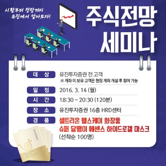 이번 세미나는 유진투자증권 계좌 보유 고객을 대상으로 오후 6시 30분부터 2시간에 걸쳐 진행한다.